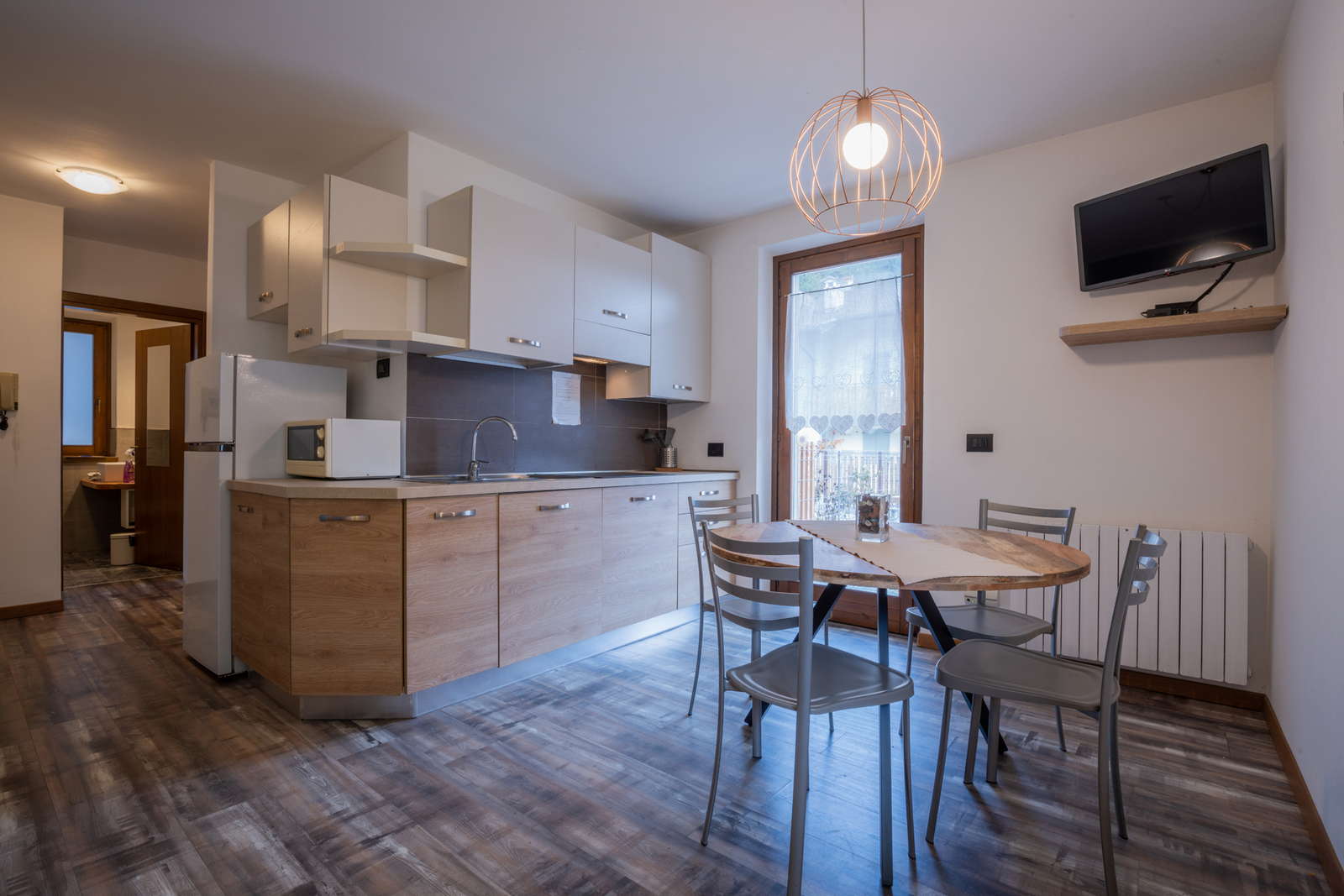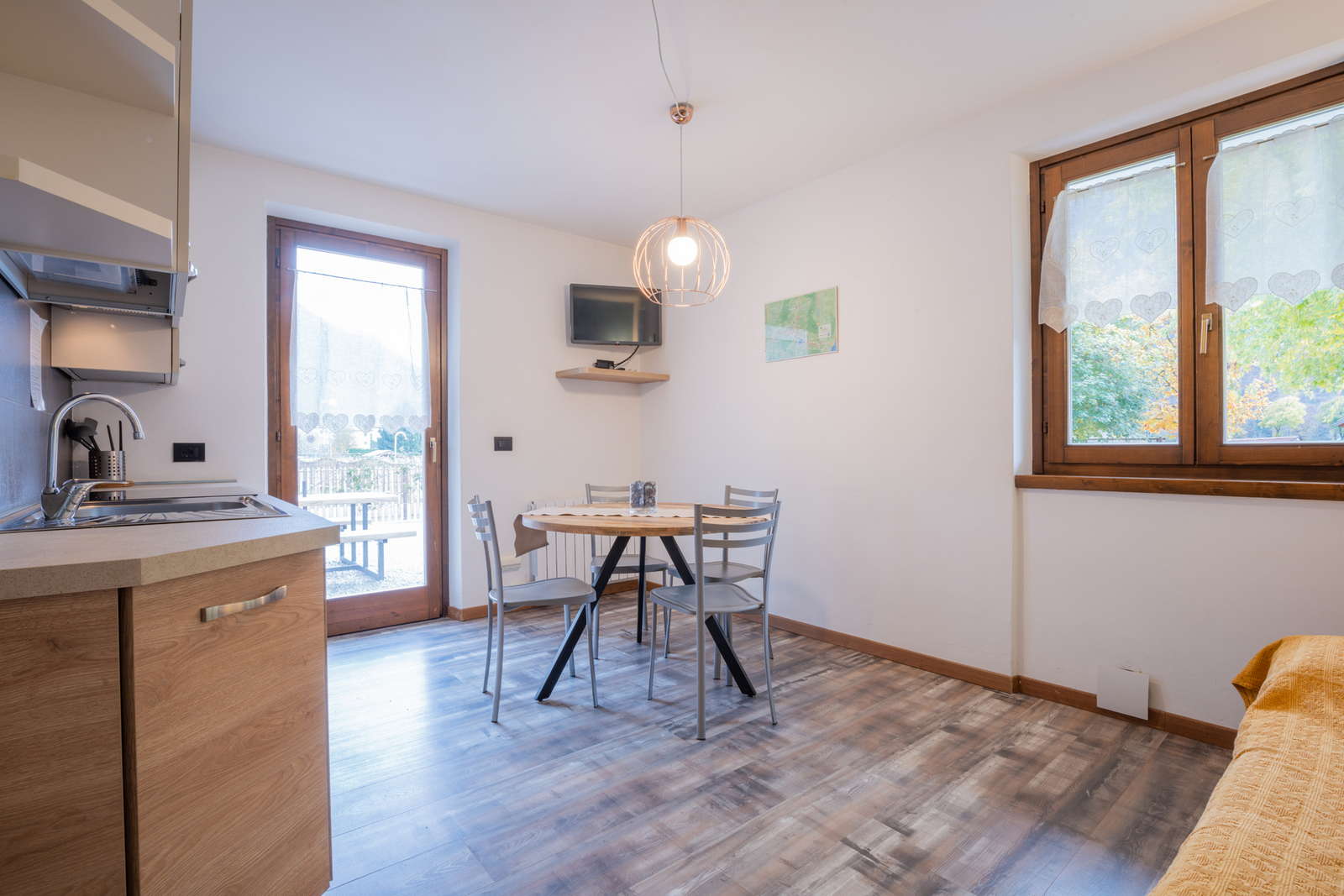 Apartment on the ground floor with garden furnished with table and chairs; consisting of: Living room with kitchen, equipped with induction hob, microwave, dishwasher, fridge with freezer, coffeemaschine, satellite TV, WIFI connection. Double bedroom, small bedroom with 2 single beds, single sofa bed in living room. Bathroom with shower, bidet, hairdryer.