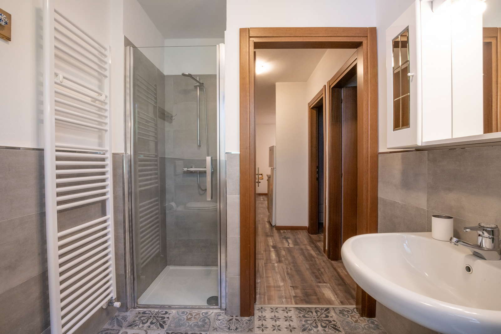 Appartamento al piano terra con giardino privato e recintato allestito con tavolino e sedie; composto da: soggiorno con cucina completa, dotata di piano a induzione, microonde, lavastoviglie, frigo con freezer, melitta, Tv Sat, connessione WIFI. Camera matrimoniale, cameretta con 2 letti singoli, divano letto singolo in soggiorno. Bagno con doccia, bidet, asciugacapelli.
